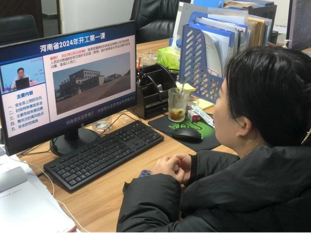 為認(rèn)真貫徹習(xí)近平總書記關(guān)于安全生產(chǎn)重要指示精神,全面落實(shí)黨中央、國務(wù)院和省委、省政府決策部署,切實(shí)做好春節(jié)后復(fù)工復(fù)產(chǎn)企業(yè)的安全生產(chǎn)工作,有效杜絕準(zhǔn)備不充分、員工精神狀態(tài)不佳、設(shè)備故障運(yùn)行、安全管理不到位等問題引發(fā)的生產(chǎn)安全事故,確保復(fù)工復(fù)產(chǎn)安全, 全面恢復(fù)現(xiàn)場施工,保證項(xiàng)目施工進(jìn)度,壓實(shí)項(xiàng)目、監(jiān)理、總分包管理責(zé)任。建投集團(tuán)2月28日上午按照省、市安委會(huì)及城發(fā)集團(tuán)統(tǒng)一要求,組織控股公司、項(xiàng)目部留守人員及施工、監(jiān)理單位共計(jì)129人統(tǒng)一收看“河南省 2024 年開工第一課講安全”專題講座直播和安全生產(chǎn)責(zé)任在肩安全生產(chǎn)警示教育片。