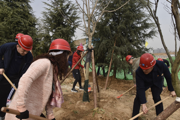 一到植樹現場,所有黨員干部都拿著鐵鍬,三四人一組,有的扶苗,有的培土,有的踩實,有的澆水,大家都充滿激情,鼓足干勁,相互配合,栽下一株株樹苗,植下一片片新綠,現場呈現出一片熱火朝天的勞動場景。為確保新樹栽種的成活率,專業人員在植樹現場進行技術指導,確保做到保質、保量、保成活。經過不到兩個小時的努力,雪松、白玉蘭、金枝槐、紅碧桃等43棵樹木全部栽種完成。